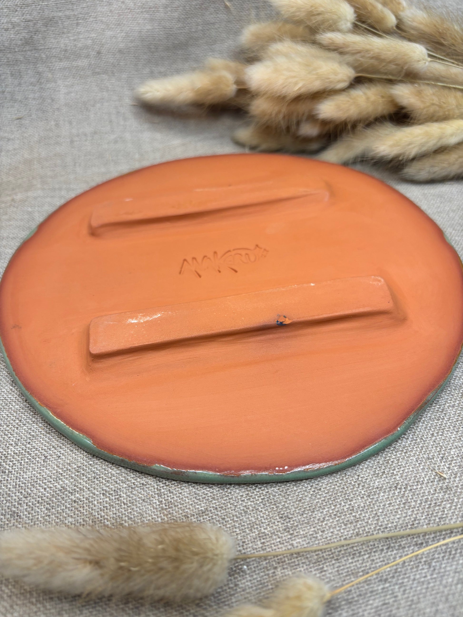 Dessous de plat vert d'eau en faïence rouge